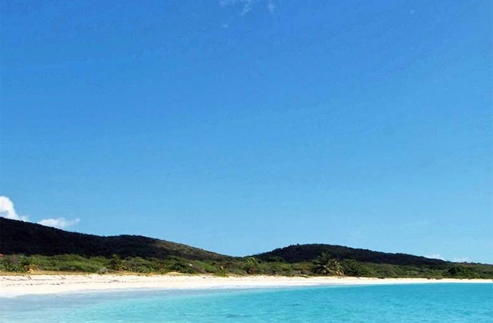 拉·奇瓦滩,波多黎各别克斯岛,在东端的水滩又称蓝海滩特色的鱼填充海草单位,并在有足够多的海洋生物左右的小礁分泌近海和岩石中海滩路的尽头。