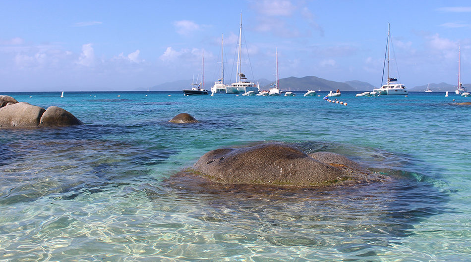英属维尔京群岛的浴室 进入魔鬼湾或春湾的温暖水域,以浮雕由维珍戈达大教堂吸引力的巨大花岗岩巨石组成的水晶般清澈的水池。