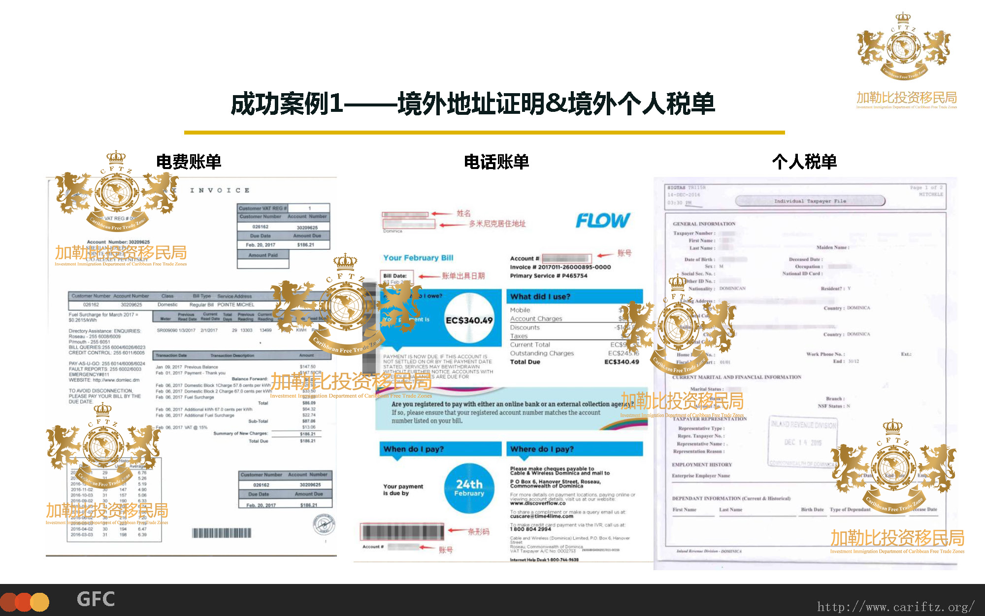 加勒比投资移民局办理的境外地址证明以及个人税单